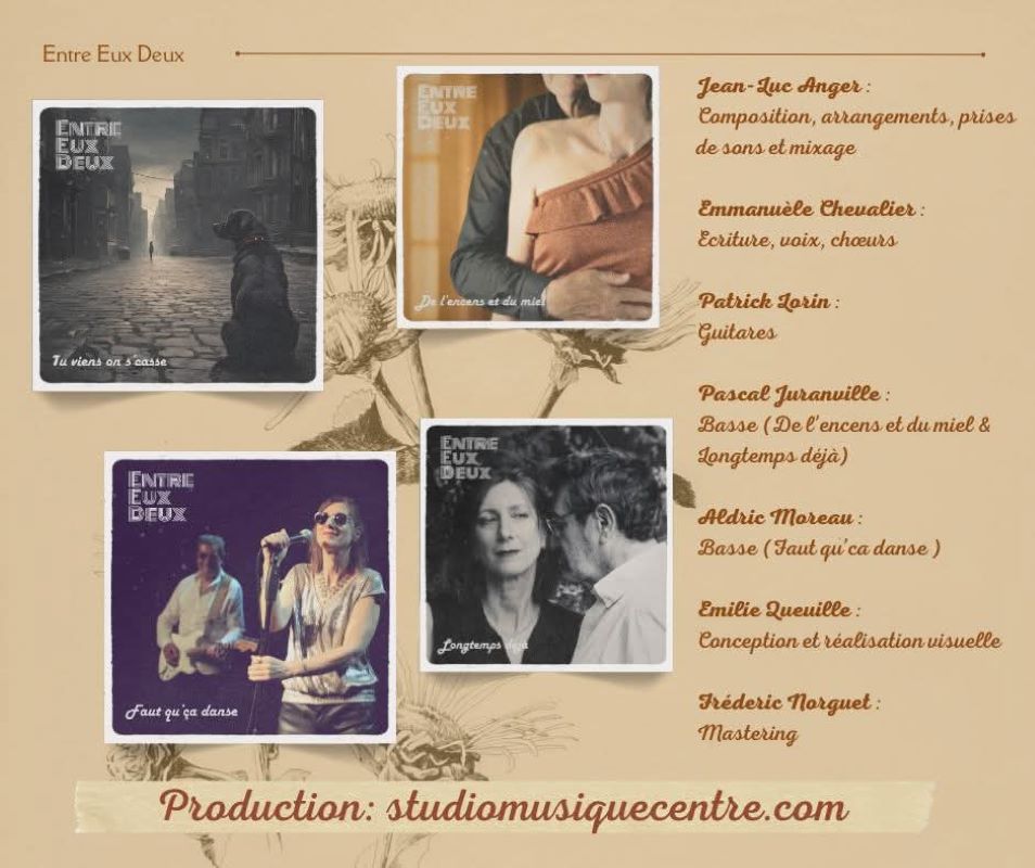 - 2024/2025 Composition, arrangement, enregistrement, mixage de l’ EP 4 titres du duo Entre Eux Deux.
