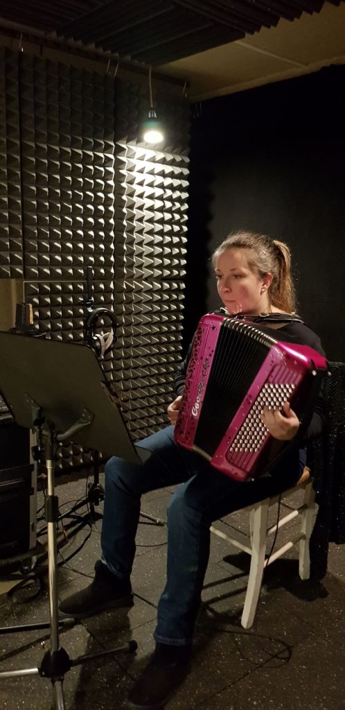 - Session d’enregistrement de voix, et accordéon sur des compositions d’ Estelle Laroche.